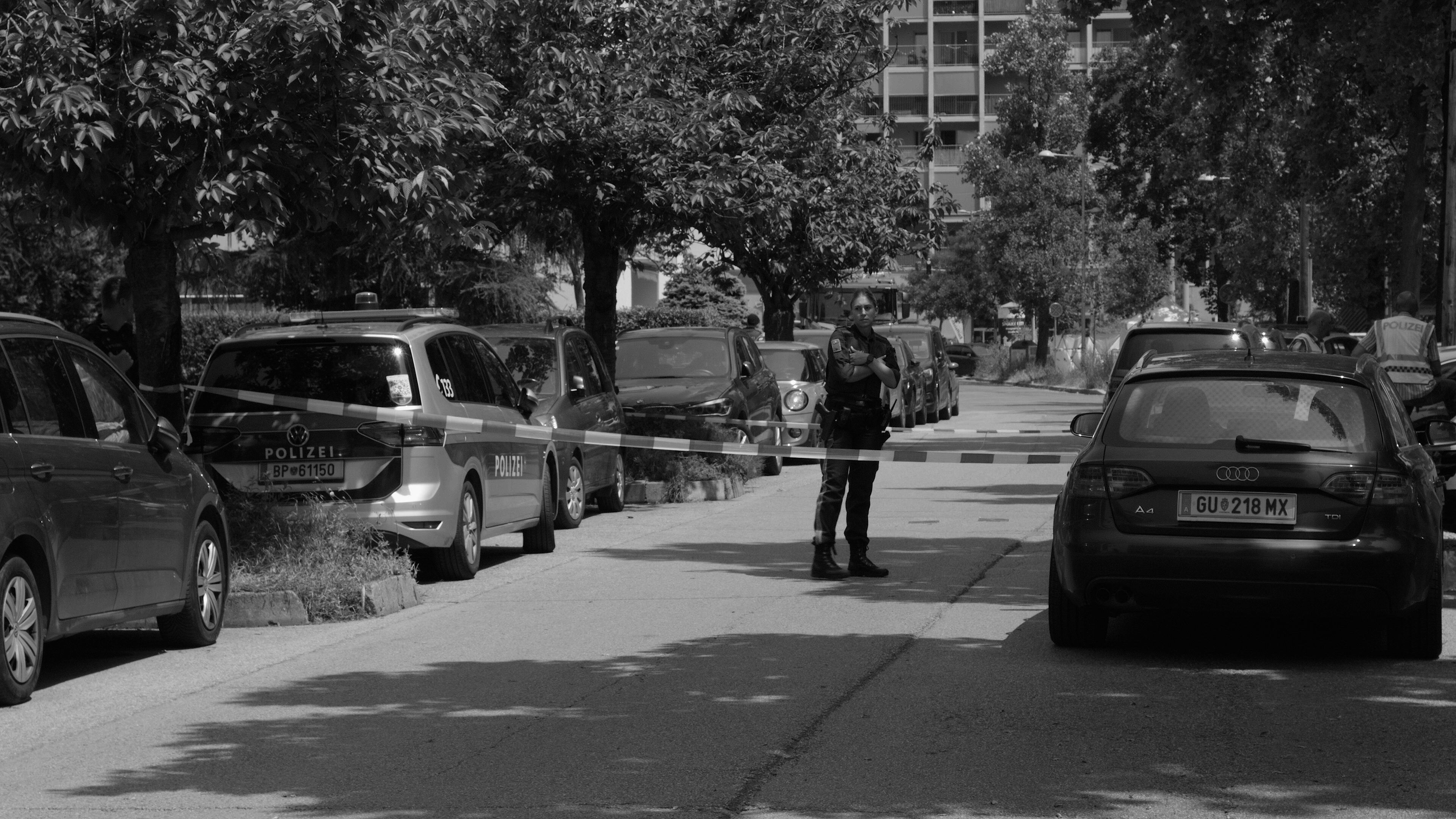 Durch die vorwiegend weiten Einstellungen werden die Personen vor der Kamera – Polizist:innen, Schaulustige, Medienleute – nicht als Individuen betrachtet und ausgebeutet, wie es in einschlägigen Berichten zu diesem Ereignis der Fall war. Vielmehr bewegen sich die Menschen als Typen durch den Stadtraum; in einer Art Choreografie menschlichen Verhaltens, als Repräsentanten für uns alle.