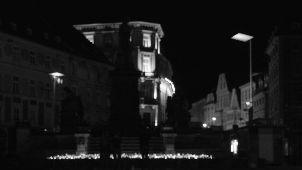 Die Fahne am Rathaus so schwarz wie der Himmel. Das sei kein Videospiel, das man resetten könne, sagt ein Mann. „Und jetzt machst du ein Video. Ja, mach. Mach was du willst.“ Zu Erzherzogs Füßen die Lichter. Hände, die zehn verloschene Teelichter wieder anzünden. Eine Schweigeminute.