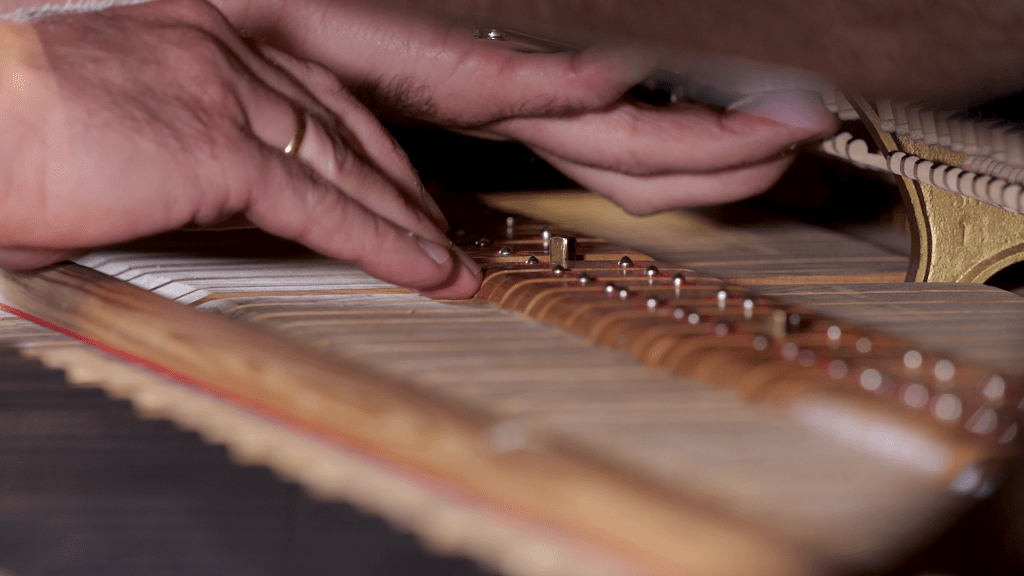 That is why the grand piano itself is one of the main protagonists of our film. Cameras and microphones accompany it on its journey, we are initially inside it, in almost total darkness, we hear the noise of the transporter’s engine, we hear the old wood groaning and the unmuted strings breathing, we hear the panting of the hard-working transporters from outside. Silence. Night. Then Stefan opens the lid. When we heard the first note during the shoot, in the cozy semi-darkness of the Gustav Mahler Hall in Dobbiaco, we got goose bumps. Of course, this sound cannot be described in words; in the film, this goosebump moment will mark the entry into the actual plot, the transition from the sphere of the piano to the sphere of humans and their art.