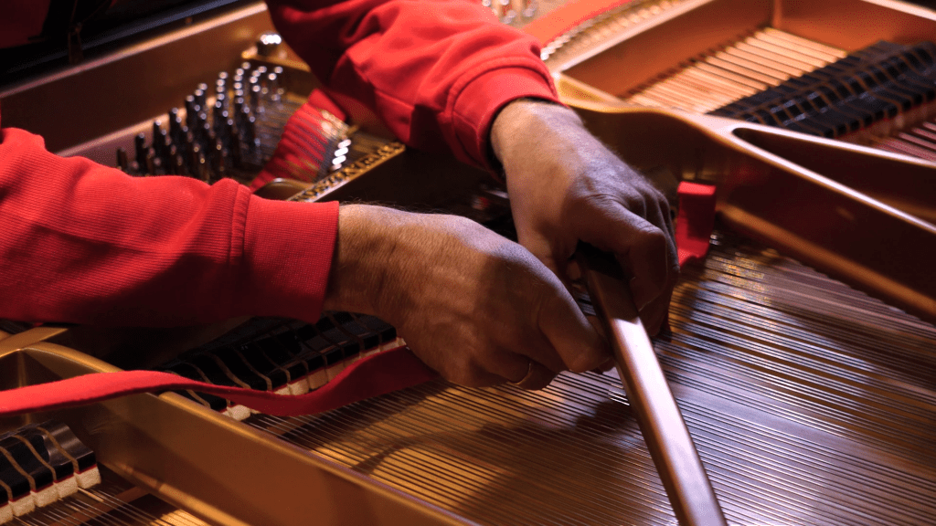 Pierre-Laurent Aimard relies on the skill and art of piano technician Stefan Knüpfer, himself a world star in his field, to create these unheard-of sounds. Stefan acts as the actual narrator of our documentary. He admires the pianist with whom he has worked for 20 years. Like him, he is obsessed with the search for the ideal sound. “Beauty,” he says at one point in the film, ”needs the flaw. There are no flawless people, there are no flawless pianos.” Stefan pleads for the quality of the old to be appreciated. The piano that he transported to Toblach for the Schubert recording was built in 1954 and resided in Prague’s Rudolfinum for a long time. Almost all the great pianists of the time played on it. After a few decades, pianos usually end up in the back room for accompanists or in private salons. The Steinway D 353018 was discovered by Stefan a few years ago and lovingly restored. It is now one of the most sought-after pianos ever and part of the “piano duo” project. The “353018” travels across Europe to unfold its particularly noble, round, warm sound under the most gifted hands.